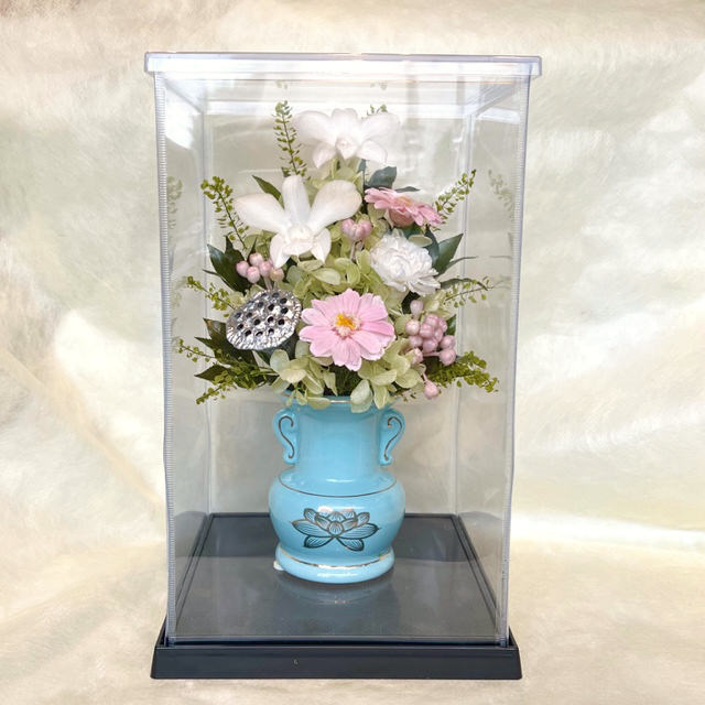 仏花 プリザーブドフラワー 送料無料 枯れない花 お仏壇 お供え花 お彼岸 仏壇飾り 蓮華 小花 ピンク 花器付き プレゼント インテリア 造花 ギフト