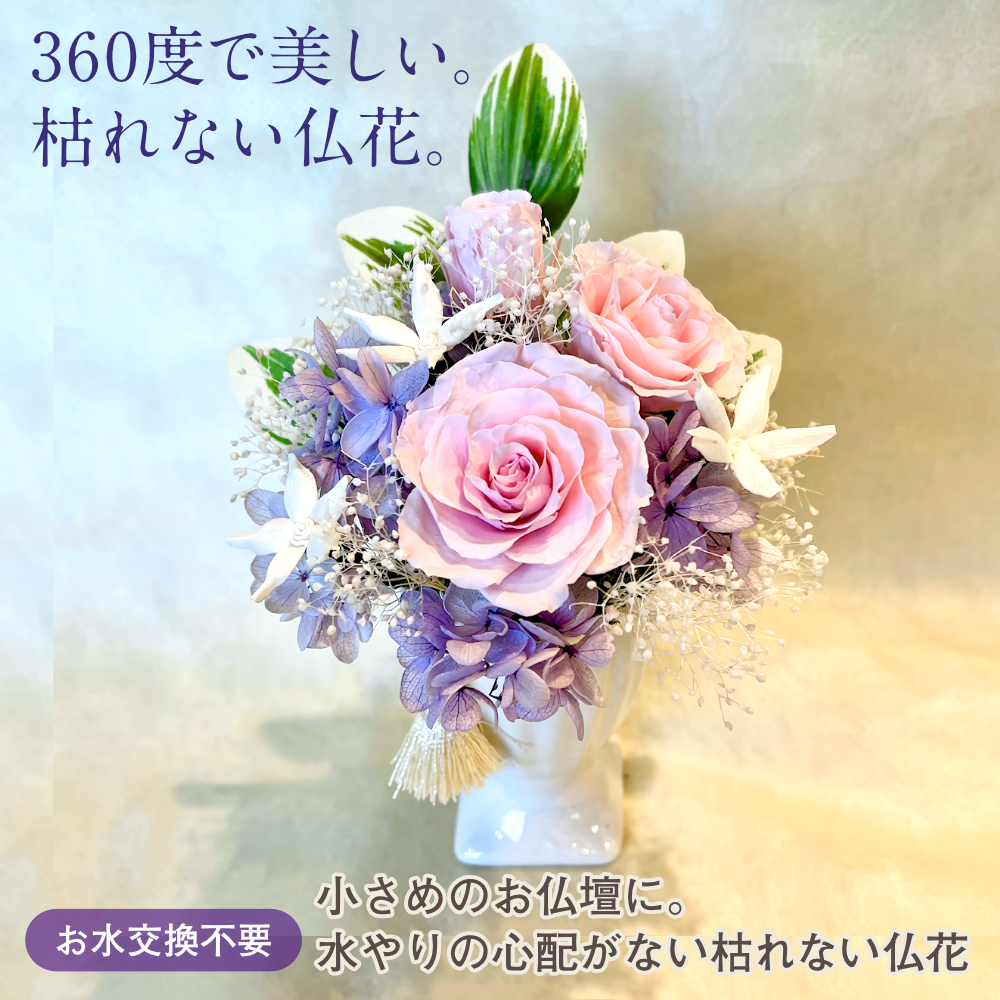 【お仏壇用の枯れない仏花】プリザーブドフラワー 送料無料 枯れない花 お仏壇 お供え花 お彼岸 仏壇飾り 花瓶付き バラ 紫陽花 ソラフラワー インテリア 造花 ギフト