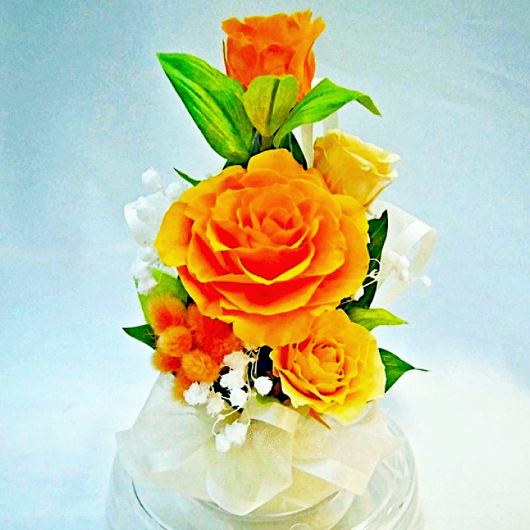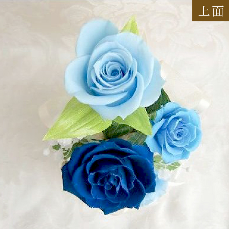 ●花材:プリザーブド(バラ)・アーティフィシャル(ソーラーバラ・アイビー・デイジーブルー・カスミ草)・リボン