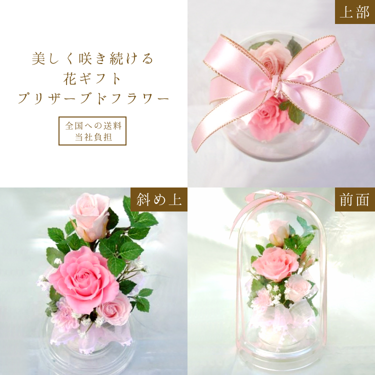 【お祝い用の枯れない花】プリザーブドフラワー 送料無料 お祝い 誕生日 枯れない花 ドーム入り バラ ローズガーデン プレゼント インテリア 造花 ギフト