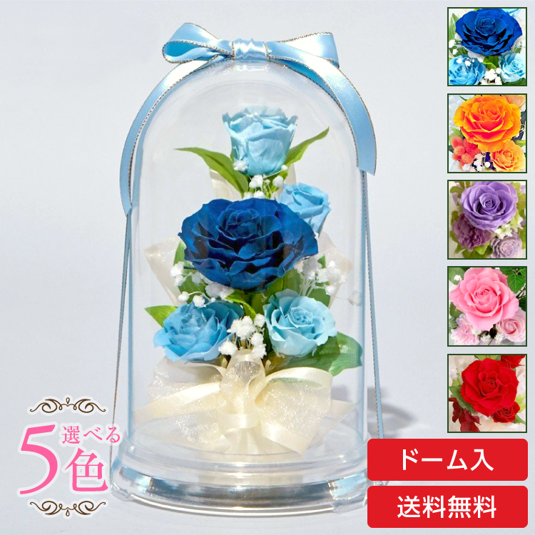 ドーム入りでお手入れの心配がなく、いつも美しいバラを鑑賞できるプリザーブドフラワーの花ギフトです。水やりの心配がなく、贈られた方に面倒な管理を必要としないため、大変よろこばれます。全5色でご用意しておりますので、お好みの色をお選びください。