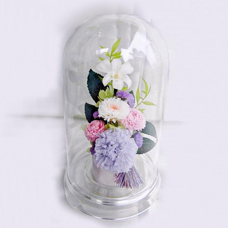 【お仏壇用の枯れない仏花】デンファレ・小菊・スターチス・アジサイのドーム入りプリザーブドフラワー