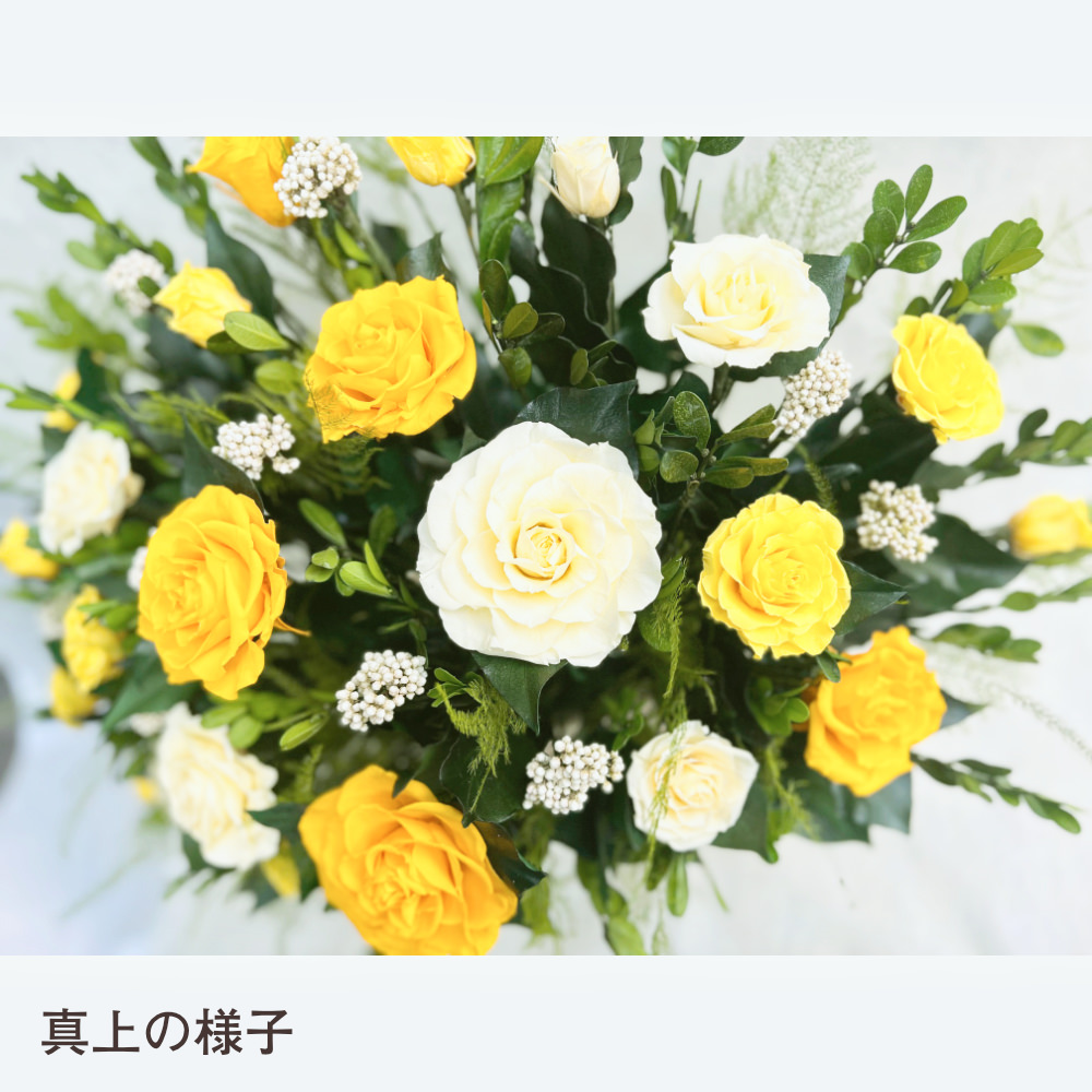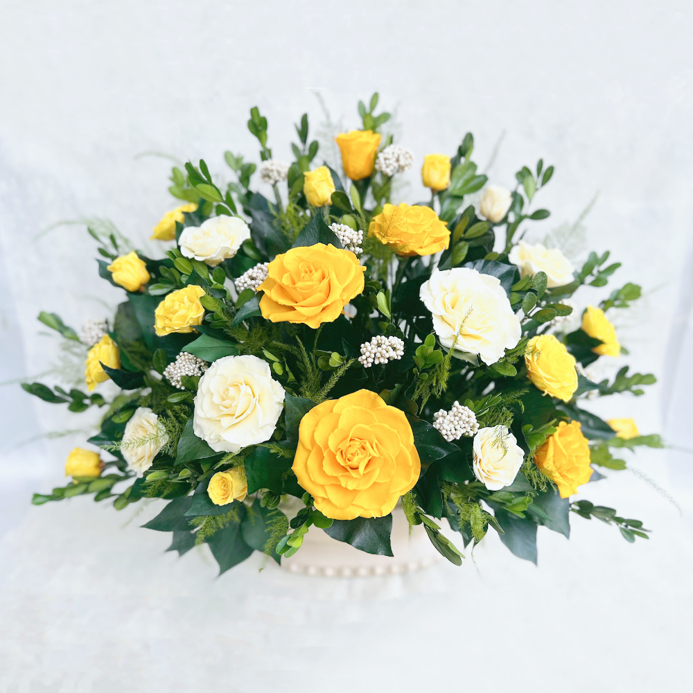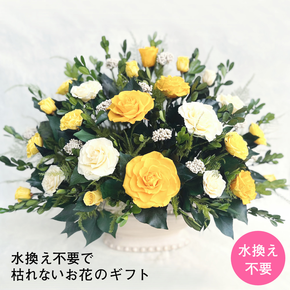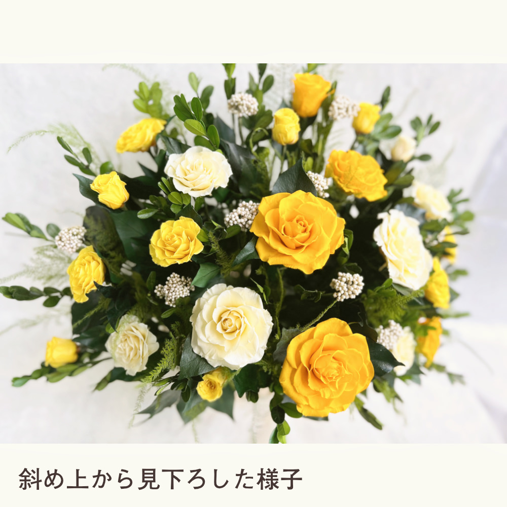 バラいっぱいのアレンジYELLOW。プリザーブドを贅沢に使用した豪華なアレンジです。