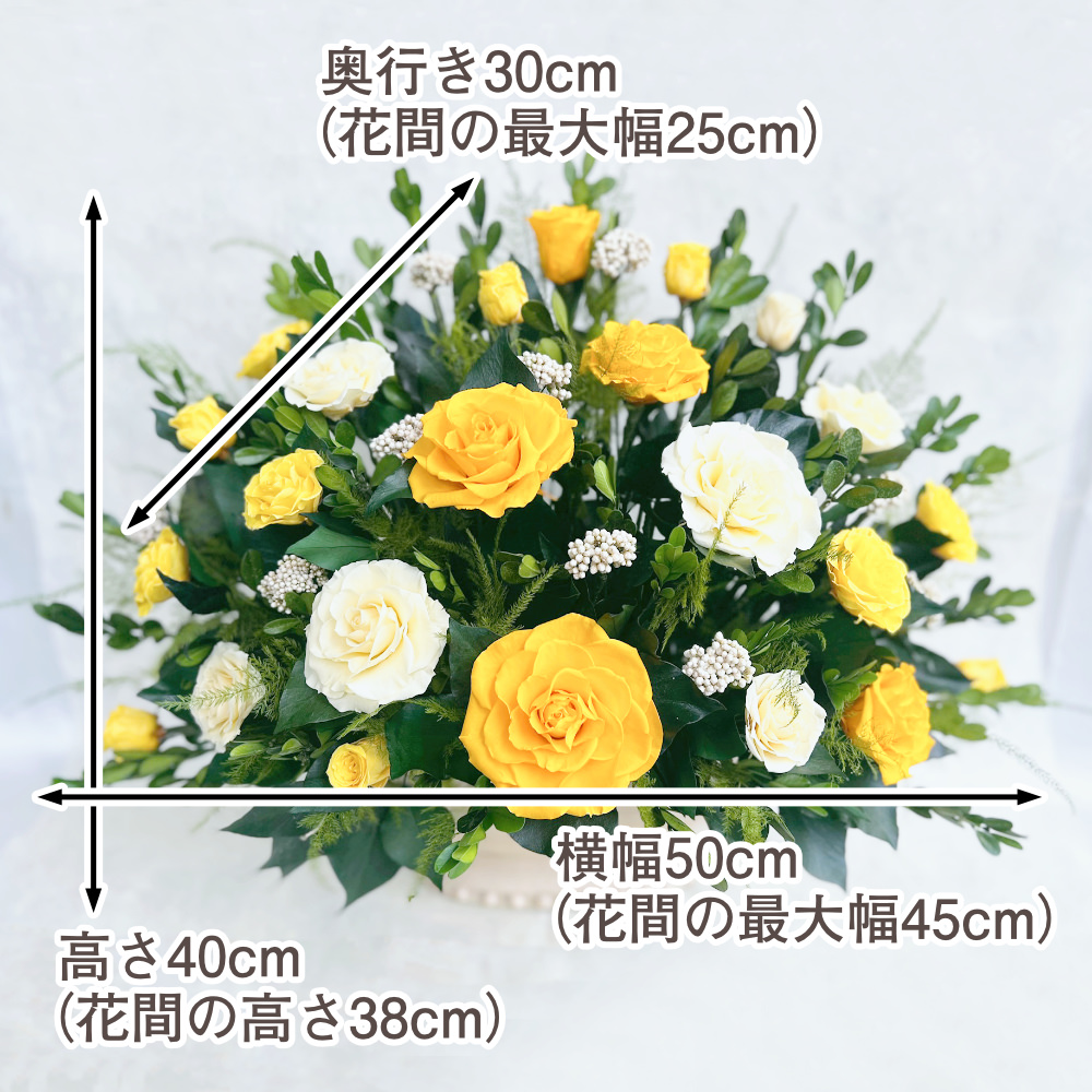 ●サイズ:横幅50cm × 奥行30cm × 高さ40cm(花のサイズ横幅45cm × 奥行25cm × 高さ38cm)